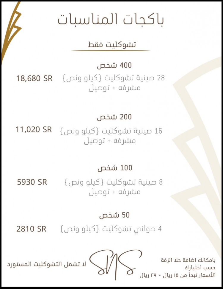 منيو التشوكليت (السعر للكيلو)